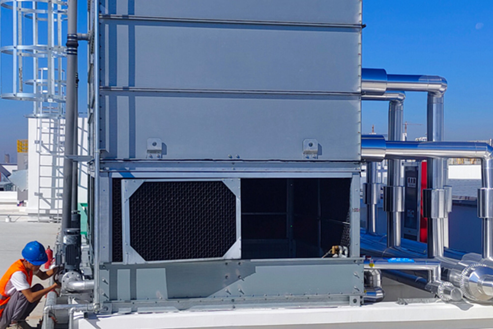 對于暫時不使用的設(shè)備,可將冷卻水塔或冰水機冷凝器的進出口閥門關(guān)閉,放水閥門打開,將水排空即可。