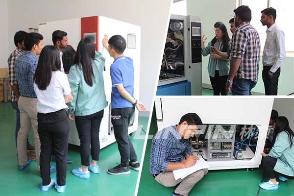 印度代理商此前曾兩次考察林頻,并順利簽訂合作代理協(xié)議。此次來訪旨在進一步了解我司的實力并安排其技術人員進行環(huán)境試驗設備的安裝調試專業(yè)培訓,代理商先后參觀了我司的研發(fā)部、PLC部、電工部、制冷部、國際貿(mào)易部、生產(chǎn)車間等,對設備生產(chǎn)的各個環(huán)節(jié)從數(shù)據(jù)核算、模型推演、工程制圖、下料加工到設備調試,再到包裝出貨都進行了詳細的了解。在為期三天的安裝調試專業(yè)培訓過程中,印度代理商對林頻所具備的技術力量、生產(chǎn)能力給予高度評價,同時,對我司高端智能化裝備充滿興趣,對產(chǎn)品質量贊不絕口。